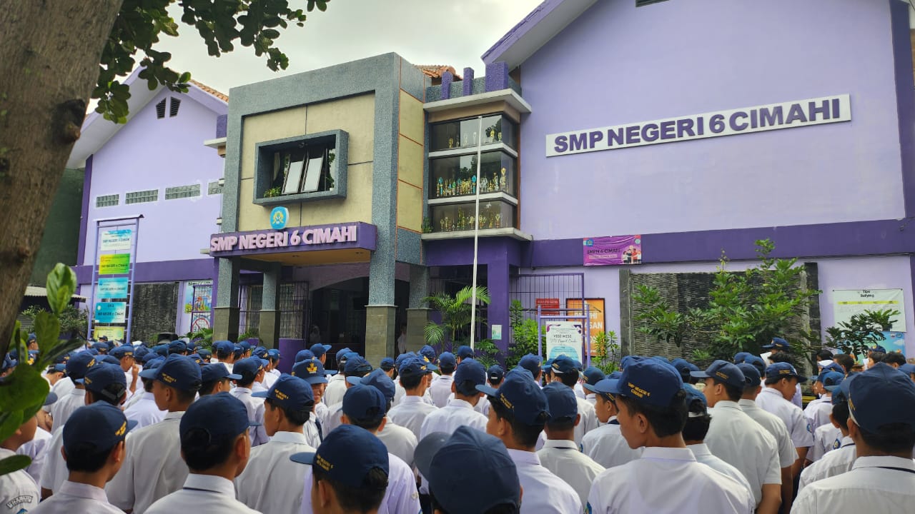 Cimahi, Kabar Senachi- Berdasarkan Surat Edaran Dinas Pendidikan Kota Cimahi Nomor 420/1921/Disdik, Kamis, 2 Mei 2024, siswa dan seluruh guru SMPN 6 Cimahi mengikuti Upacara Bendera